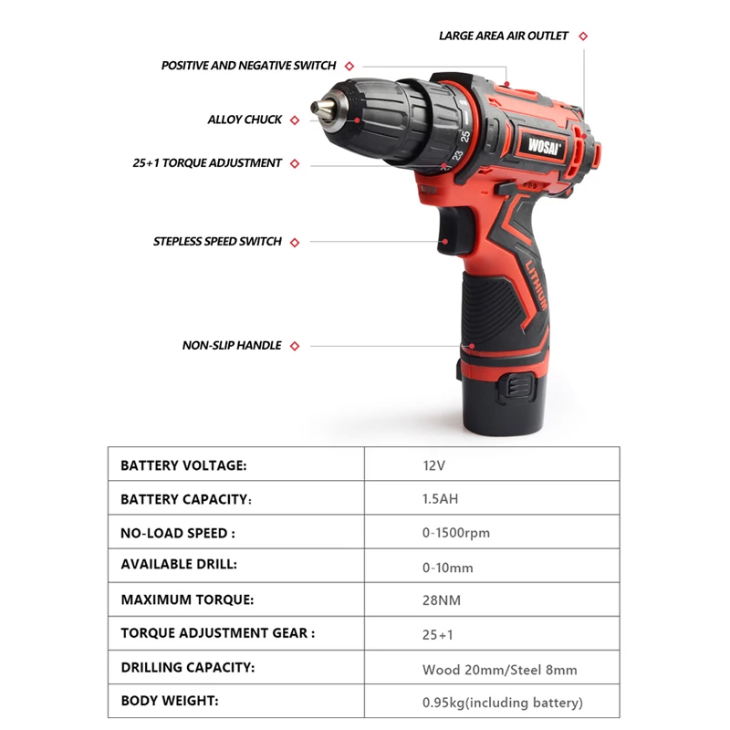 Special Offer Wosai 12V 16V 20V Accuboormachine Elektrische Schroevendraaier Mini Wireless Power Driver Dc Lithium Ion Batterij 3 8 Inch Discount 40% Today!