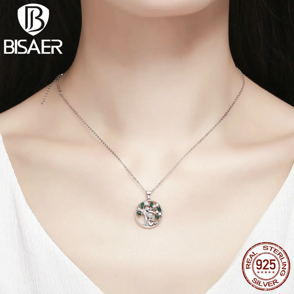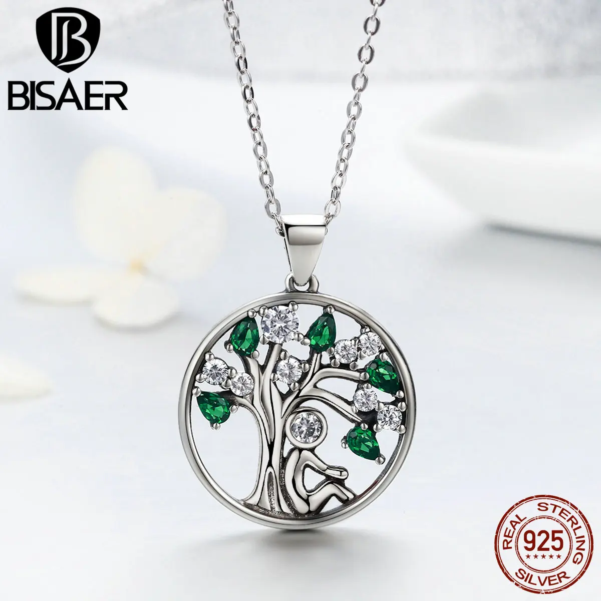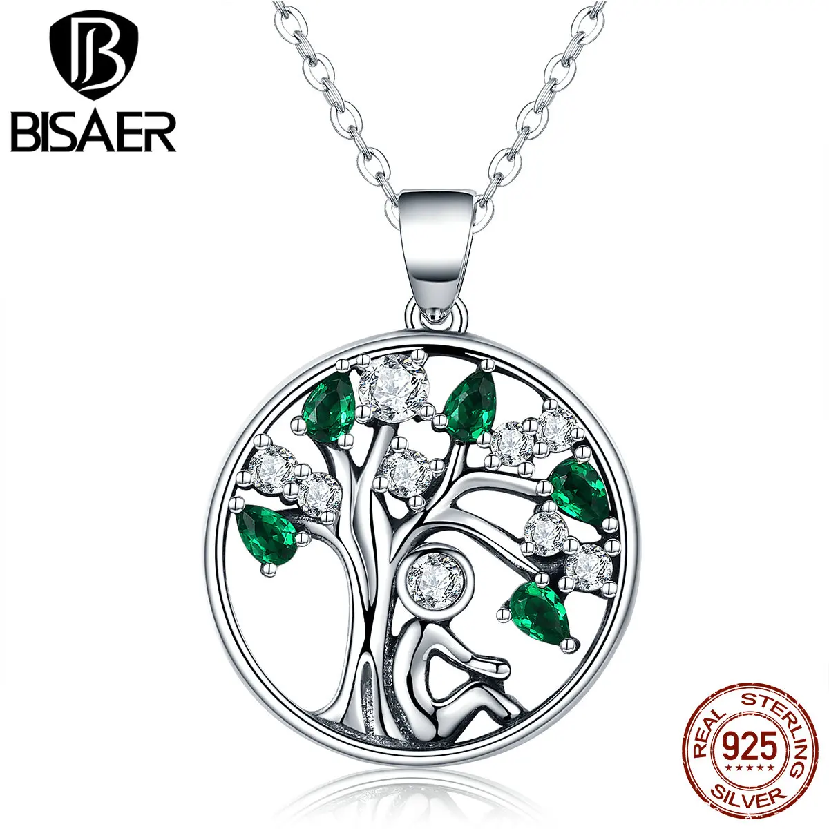 Special Offer BISAER Authentieke 925 Sterling Zilver Familie Boom Van Het Leven, Groen AAA Zirconia Hanger Ketting Zilveren Sieraden ECN094 Discount 30% Today!