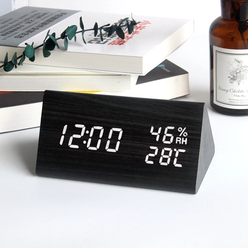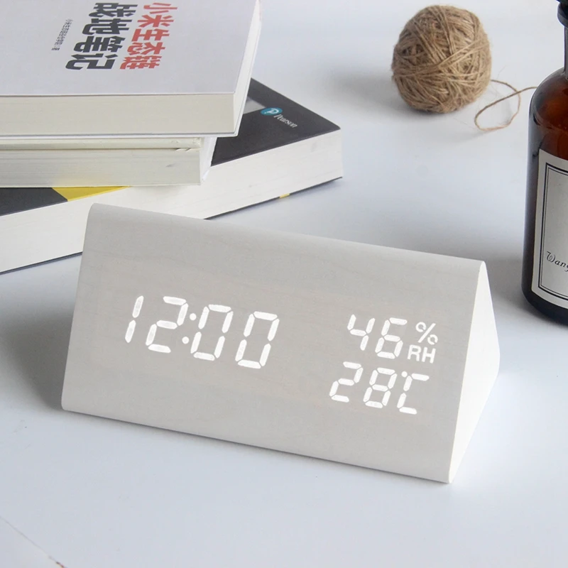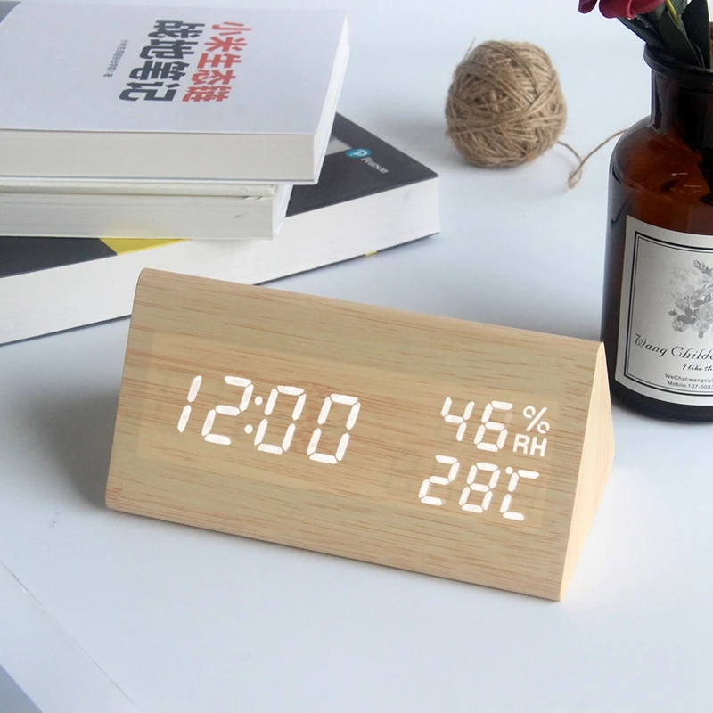 Special Offer LED Houten Wekker Tafel Voice Control Digitale Klok Temperatuur Vochtigheid Display Hout Despertador Desktop Klokken USB AAA Discount 30% Today!