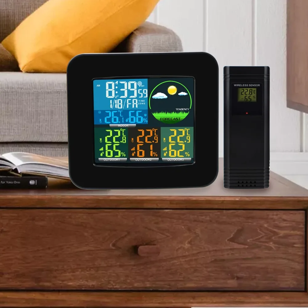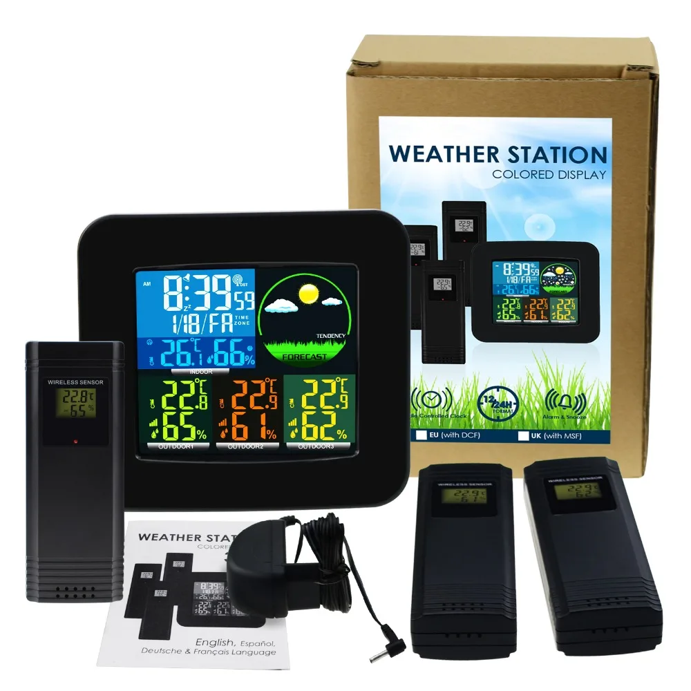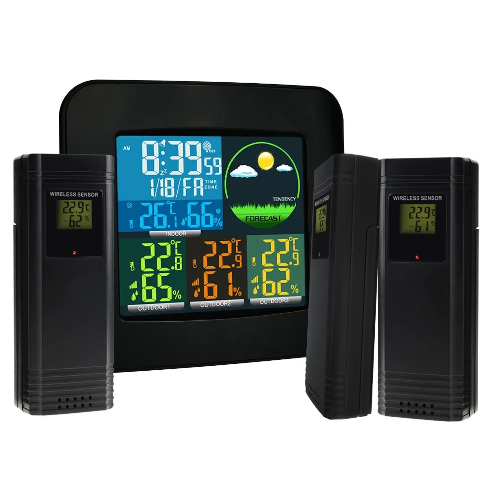 Special Offer Digitale Weerstation AZG DCF RCC 3 Indoor Outdoor Draadloze Sensor Weersverwachting Gekleurde LED LCD Display Discount 0% Today!