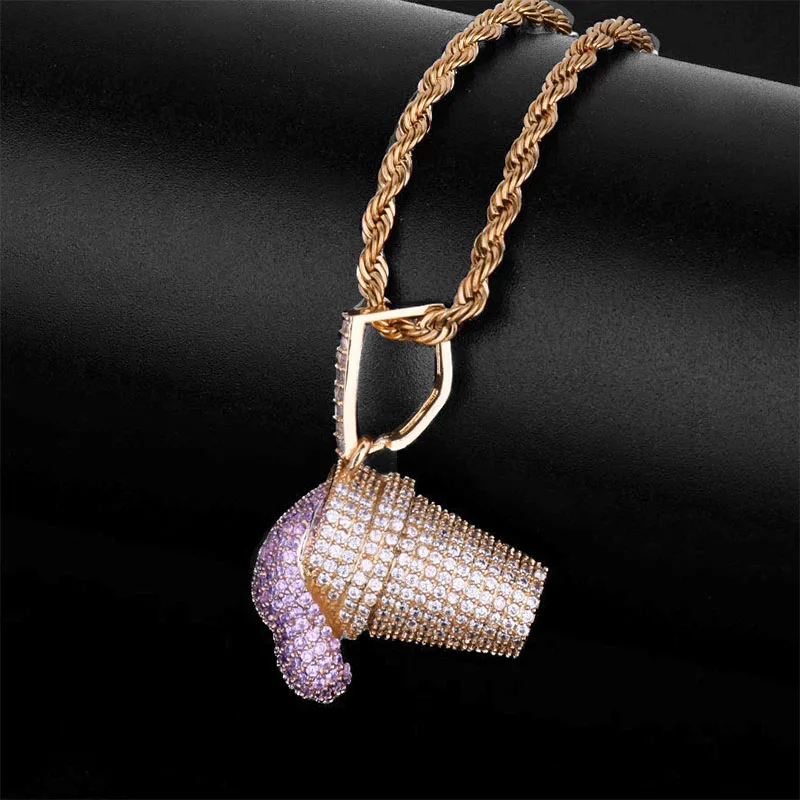 Special Offer Iced Out Cup Dronk Hanger Ketting Met Ketting 3 Kleuren Aaa Zirkoon Hanger Ketting Hoge Kwaliteit Hip Hop Sieraden Discount 30% Today!