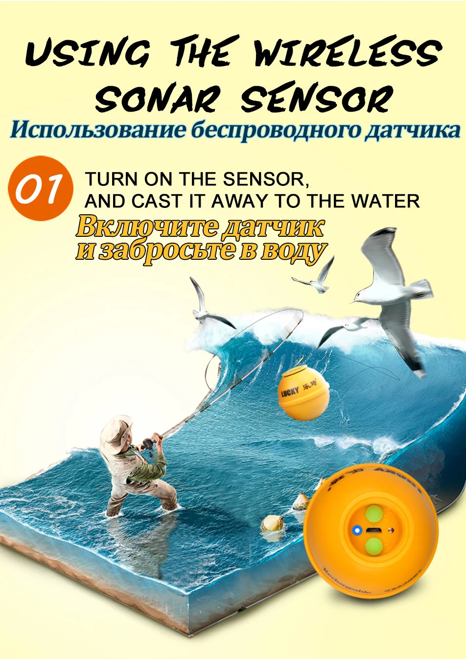 Special Offer LUCKY FFW718 LA Draadloze Fishfinder LUCKY FFW718LA, 45 M 135FT Fishfinder voor Zee Meer Rivier Discount 34% Today!