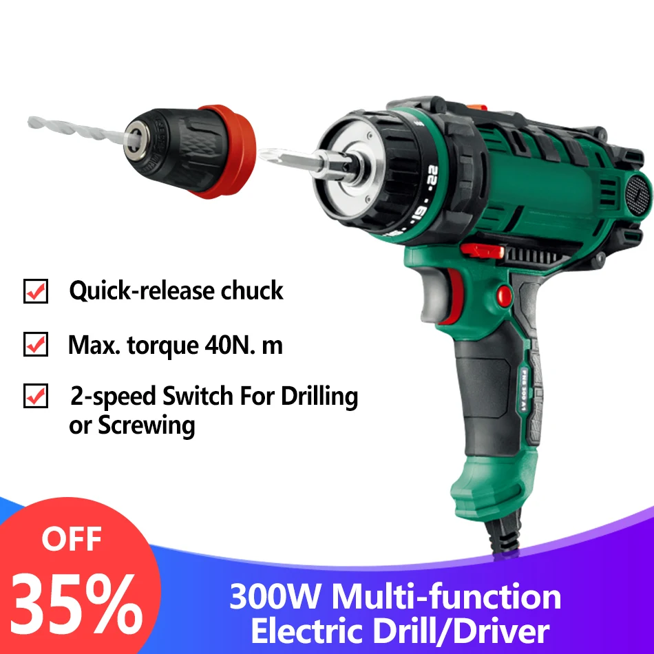 Special Offer 40N. m 300W Elektrische Boormachine Schroevendraaier 2 speed Torque Driver Handheld Klopboormachine Tool met Quick release chuck Boren Discount 35% Today!